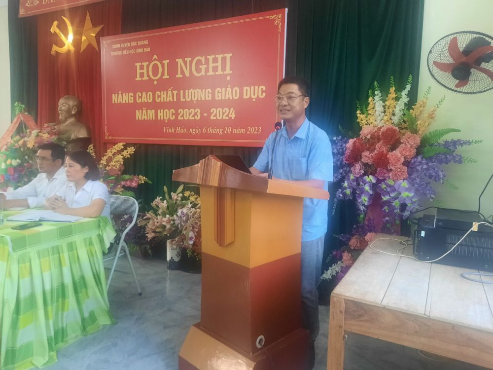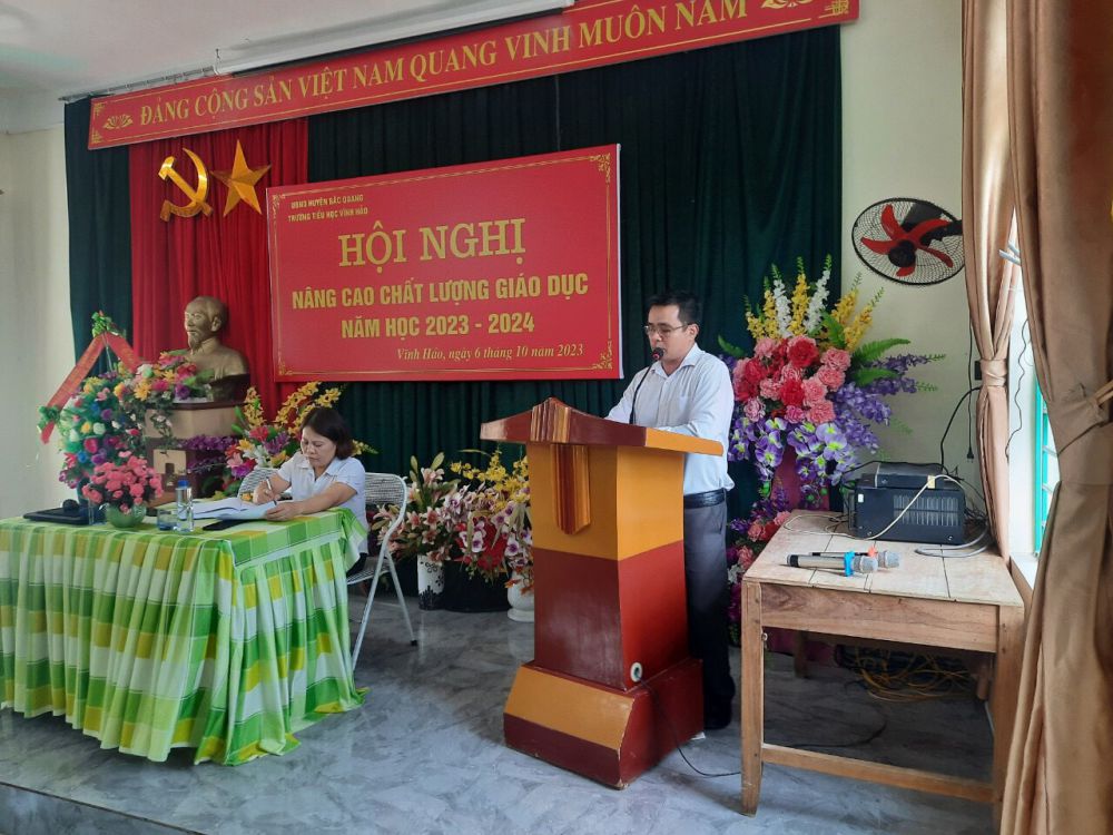 Chiều ngày 6/10/2023 Trường TH Vĩnh Hảo tổ chức thành công tốt đẹp Hội nghị nâng cao chất lượng giáo dục năm học 2023-2024. Thành phần tham dự. Đại diện PGD có đc: Đỗ Văn Cường viêc chức phòng giáo dục Về phí lãnh đạo xã có đc: Hoàng Văn Xuân- Bí thư Đảng ủy xã, Đ/c: Vũ Đình Dũng Bí thư chi bộ cùng các đc trong BGH đại diện phụ huynh nhà trường, đại diện phụ huynh học sinh các lớp cùng đông đủ can bộ viên chức- người lao động nhà trường có mặt đầy đủ. Tại Hội nghị đã báo cáo thực trạng và đưa ra phương hướng nhiệm vụ các giải pháp nâng cao chất lượng giáo dục năm học 2023-2024 và thực hiện kí cam kết chất lượng CM đối với GV nhà trường , kí cam kết giữa nhà trường với chính quyền, kí cam kết giữa nhà trường và PHHS. Tại Hội nghị đã nhận được rất nhiều ý kiến đóng góp và đưa ra các giải pháp nhằm nâng cao chất lượng giáo dục